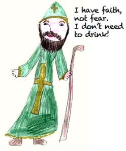 I said, “There’s nothing wrong with enjoying a drink or two to celebrate a holiday when you are the legal drinking age.” Then, in my best Irish brogue, “As a mater of fact, I look forward to raising a glass and sipping a wee bit ‘o green beer to celebrate St. Patrick’s Day… but getting drunk is a not the way to honor St. Patrick—especially since Patrick himself didn’t drink.”