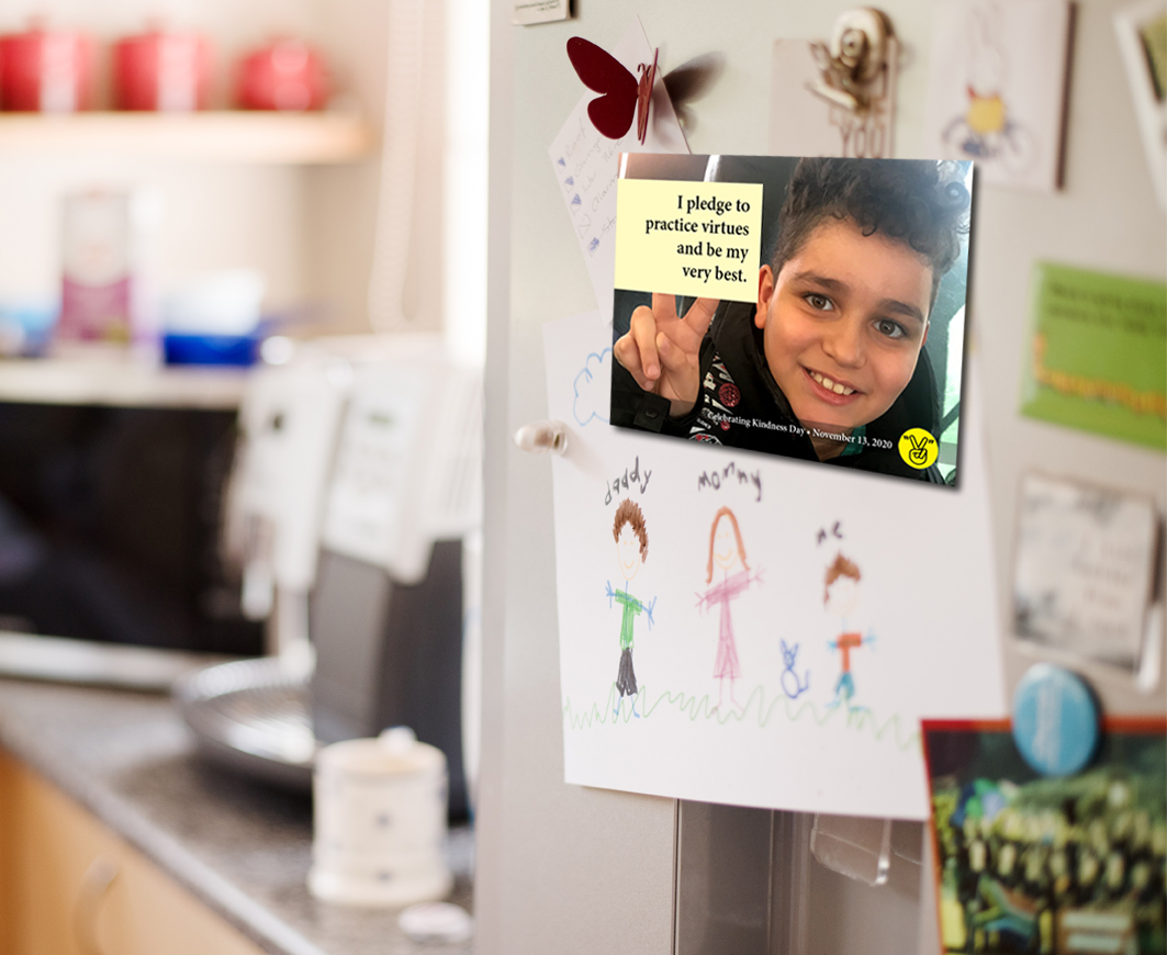 Kindness is one of the dozens of Virtues from “A” to “Z” that empower kids to be their very best. Email us a photo of your child or student pledging to practice virtues and we’ll send you a JPG to share on social media.